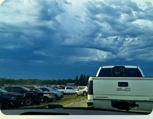 Taip pat norėjau paminėti, kad per Seano Feuchto „Leiskite mums garbinti“ renginį Manitoboje šią vasarą, virš mūsų atsidarė dangiškas portalas. Mano draugė Melanie atsiuntė man vieną savo nuotrauką. Man tai atrodytų kaip Dievo ženklas ir stebuklas! Neįmanoma to sukurti. Ir tai ne dirbtinis intelektas. Aš mačiau trumpą vaizdo įrašą, kuriame matyti, kaip žmonės pradeda atvykti, ir jūs galite matyti portalą fone. Bet nuotraukos perspektyvoje Melanie atvyksta į renginį ir ieško parkavimo vietos, kai pastebėjo šį stebuklą. Portalas virš mūsų garbinimo vietos. Transporto priemonės buvo ūkininko lauke, į pietus nuo Steinbach, MB. Buvome beveik 3000 žmonių!