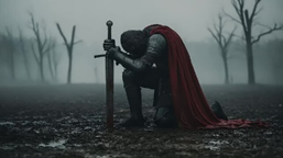 REGĖJIMAS: Mačiau save, apsirengusią šarvais, stovinčią Parlamento kalvoje Otavoje, Ontarijuje, Kanadoje. Užlipau į kalvą ir įsmeigiau savo kalaviją į žemę. Tada pamačiau daug kitų maldos užtarėjų darant tą patį, ką dariau aš, ir tai sukėlė bangavimo efektą žemėje, dėl kurio Parlamento pastatai ėmė drebėti ir griūti. Tik Taikos bokštas liko stovėti. (žemiau: kareivis / riteris, klūpantis maldoje su kardu, įsmeigtu į žemę – ir Otavos Parlamento pastatai su Taikos bokštu viduryje – abu „Adobe Stock“)